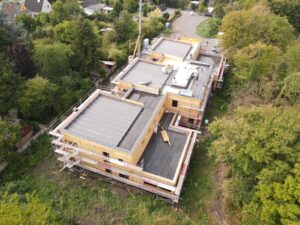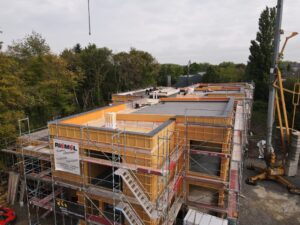 Im Frühjahr 2026 zieht die Einrichtung in einen großzügigen Neubau mit vielen Außenflächen um, der momentan in Holzbauweise in einem kleinen Wäldchen am Sportplatz des SV-Wersten errichtet wird. Das obige Bild zeigt den geplanten Bau.
